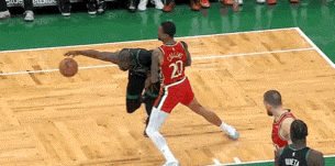 一边目睹哈登再次扛起球队对阵凯尔特人